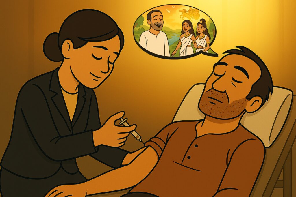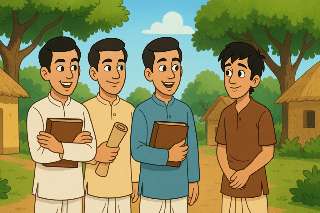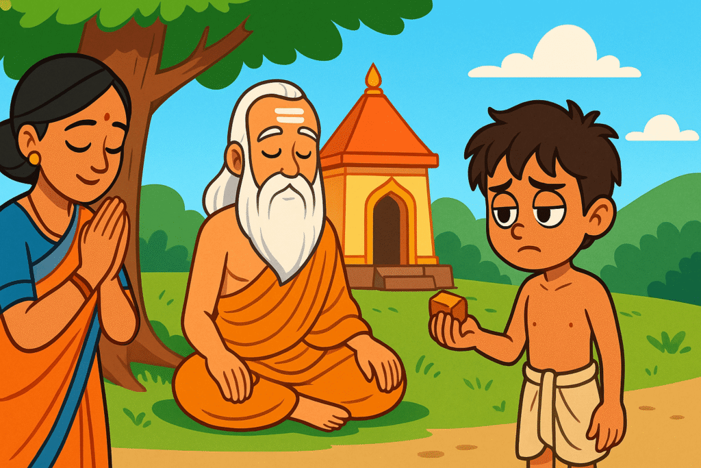 A mother asks a sage to cure her son’s jaggery addiction, but the sage requests a week to first overcome his own. This act teaches the lesson that one should overcome their own bad habits before trying to fix others’.