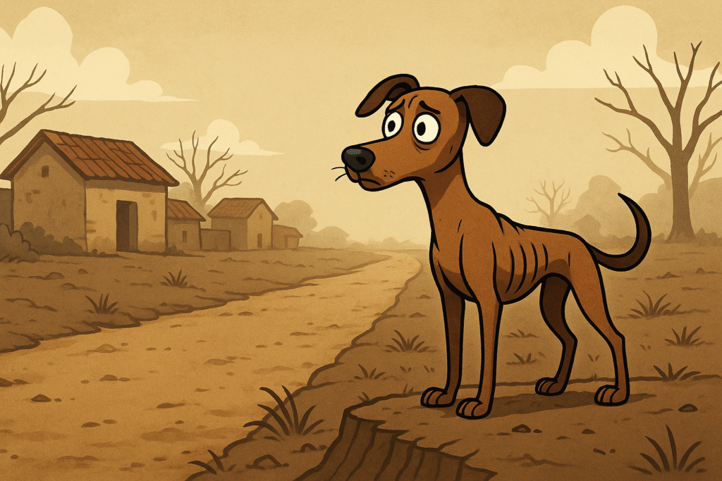 A dog leaves his famine-stricken village for a city where he steals food from an open house but is then brutally attacked by local dogs. He returns to his village, concluding it is better to be hungry but safe at home than to risk one’s life for abundance elsewhere.